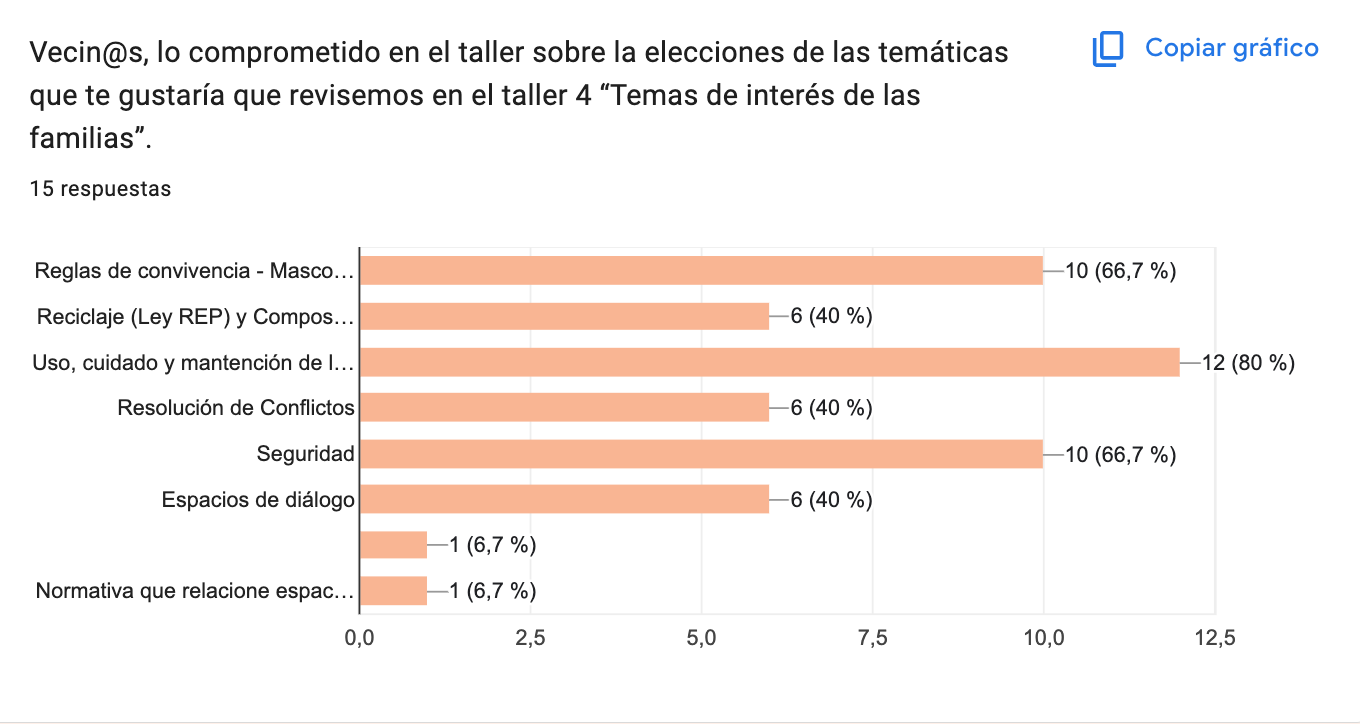 Cada uno de estos talleres será acompañado por una encuesta, la que nos ayudará a mejorar el material y reforzar la información necesaria para uds.